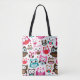 colourful owl pattern tote bag