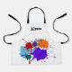 A bright and colourful apron design for your budding artist. A rainbow of paint is spattered across the design with the ability to personalise with your child's name or school name. You can also leave blank. This design can be used on adult sized aprons as well.