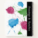 This design has red, green and blue paint splatters on the front and back covers. By the spiral binding there is a thick, black border. This notebook shows blank pages making great for artists and designers who want to get their ideas on paper. The text by the binding reads "Drawings & Sketches" but you can replace it with your own text. These versatile notebooks are available in three styles and come with a choice of six spiral colours. Take your personal design even further by choosing one of eight page design options including College Ruled, Graph and Recipe.