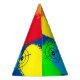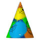Colourful paintball Birthday party hats for kids. Personalised hats with cross hairs target and colourful paint splatter. Fun design for children.