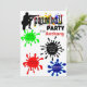 Start your celebration off right with a paintball invitation for that special birthday. This is a bright invitation for a paintball party with blobs of colourful paint drippings. Personalise the invite with your party information.
