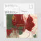 Send out beautifully artistic holiday post cards this year with this modern painted abstract design. It features spattered paint colours in holiday colours of dark red, forest green, gold, beige and ivory blended in a fascinating pattern. Gold text on the front of the card spells out "HAPPIEST HOLIDAYS" in modern sleek typeface. A text template is also included with a holiday greeting on the back of the card along with your return address. You can edit the text if desired.