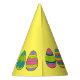 Party hat features an original marker illustration of a row of painted Easter eggs, printed on a yellow background.