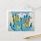 Colourful Painted World Map in Hands, Art Photo Postcard