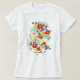 Punch up your wardrobe with this happy t-shirt featuring a loose bouquet of wild flowers in retro brights like tomato red, sherbet orange, lime green, bright aqua and serene blue violet and bring a little sunshine to your look.