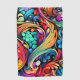 Rainbow of ornamental paisley pattern, colourful curved teardrop shapes.