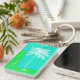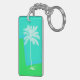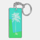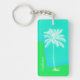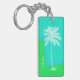 Stylish key chain, with graphics of a tropical white palm tree against a aqua, blue, and green abstract background, on both sides. Personalise the white text running up the left side. Great way to keep that Summer feeling with you all year.