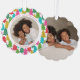 Send unique holiday greetings with these fun photo Christmas cards that double as ornaments! They feature a colourful faux decoupage tissue paper design in red, green, lime, aqua blue, pink, and golden yellow. Easy to customise with your own text and photos!