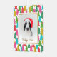 Add some fun, cheer, and colour to your holiday celebrations with this fun pet photo Christmas ornament, featuring a pattern of overlapping colourful tissue paper Christmas trees and a faux gold foil frame. The design is the same on the front and the back. A white gradient overlay towards the bottom of the photo template allows the text to stand out against your photo.