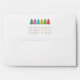 Go bold and add a touch of fun to your holiday mailings with these colourful, modern styled envelopes, which are pre-addressed for your convenience! The back flap features a line of slightly overlapping tissue paper Christmas trees in festive colours of red, green, lime, aqua blue, pink, and golden yellow. The inside contains a matching Christmas tree design.