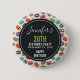 Birthday button with a cute pattern of macarons in many different colours with a faint polka dot pattern behind.