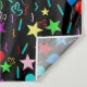 Colourful party balloons and stars on black background pattern design.