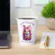 Introducing our colourful pastel Easter Bunny Rabbit design. Embrace the joy of the season with a playful bunny with a lavender tinge to his fur, surrounded by a burst of colours-lush purples, pinks, and hints of orange watercolor flowers. This is the perfect design for adding a festive and whimsical touch to your Easter. All text is editable. Customise from the product page or use the design tool to change font styles or colours. This Easter paper cup features a cute bunny and Happy Easter with your name. Edit, leave as is or remove entirely. Great for hosting Easter brunch!