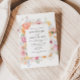 This wedding invitation features a beautiful floral frame made of soft pastel flowers in pink, orange, blue, yellow, and white. It's the perfect way to invite your guests to your special day with a touch of elegance and charm. The colourful flowers add a pop of colour while still maintaining a classic and timeless aesthetic. Your guests will be delighted to receive such a lovely invitation and excited to celebrate with you.