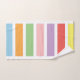 Geometric linear, rectangle, striped pattern of rainbow pastel hues of blue, orange, green, pink, purple, red and yellow.