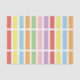 Geometric linear, rectangle, striped pattern of rainbow pastel hues of blue, orange, green, pink, purple, red and yellow.