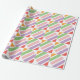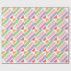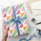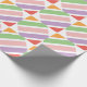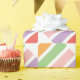 Geometric linear, rectangle, striped pattern of rainbow pastel hues of blue, orange, green, pink, purple, red and yellow.