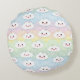 Colourful Pastel Kawaii Clouds Pattern Monogram Round Cushion