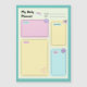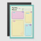 This colourful daily planner design in soft pastel colours on a magnetic card features cute small Kawaii style decorations. Fill out the month and date and the four boxes to have an overview over your priorities, appointments, notes and the to do list of the day. Can it get more handy than this?