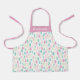 Colourful abstract pastel paint strokes, pattern print apron. Features, coordinating pink colour straps and template text line in white for name.