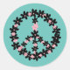 Colourful Pastel Pink Black Floral Peace Sign Classic Round Sticker