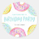 Add a sprinkle of fun to your celebration with these customisable birthday party stickers featuring watercolor pink, blue, and yellow glazed doughnuts with colourful sprinkles. Perfect for doughnut-themed birthday parties, these sweet stickers are ideal for sealing favour bags, decorating invitations, or adding a personalised touch to party supplies. Easily customise with the birthday person's name, age, or a short thank-you message to make your party uniquely yours. Designed in a soft watercolor style, they’re great for kids’ and adults’ parties alike. Matching items and other colour options are available to complete your doughnut party theme.
