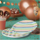 This angled stripe pattern in a colour palette of light pink, soft orange, spring green, mint, sky blue and navy make these paper plates a fun addition to your party decor and table scape. Great for a gender neutral baby shower, kid birthday party, graduation celebration and more, this patten brings a sense of geometric whimsy to any event.