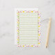 A lined stationery paper with colourful dots in yellow, green, orange and shades of red painted in watercolor.