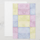 colourful soft pastel coloured coloured patchwork style pattern in pale pink, blue, and green squares with dainty floral lace like floral patterns on the squares corners and a faded texture, is girlie and feminine and would make a good background for your own text or words, geometrical picture with colour colour blocks in pastels with ornate borders