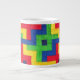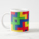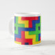 A colourful 'patchwork' design jumbo-sized mug for coffee or soup, in primary red, blue, green and yellow, from a photograph of a patchwork cot-quilt, handmade by Judy Adamson. A Teapot, Pitcher and Other Mugs with this design also available in my store.