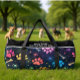 This colourful pattern duffel bag features vibrant paw prints and bones scattered across a dark, space motif background with tiny stars. It's a stylish and functional pet-themed travel accessory, perfect for any pet lover.
