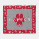 Darling paw prints, in vivid hues of grey and silver, designed in a variety of sizes, and set over a red background. Add his or her name by following the "Personalise this template" prompt. If you would like assistance, you can message me here on Zazzle, or send me an email at boagiesbackyard@gmail.com. I'm happy to help! Pair with matching pet bed for well coordinated comfort. Your pet will love this!