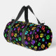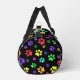 Colourful Paw Prints Design Duffel Bag with customisable background colour. Other bag options available in drop-down menu.