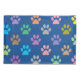 Colourful puppy paw prints pattern on blue background pillowcase