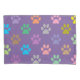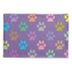 Colourful puppy paw prints pattern on purple background pillowcase