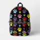 Colourful Paws, Paw Pattern, Paw Prints, Dog Paws Printed Backpack