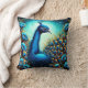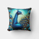 Colourful Peacock Among Vibrant Blue Flowers Cushion