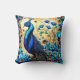 Colourful Peacock Among Vibrant Blue Flowers Cushion