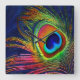 Colourful Peacock Feather Print Square Wall Clock