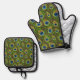 Colourful Peacock Feathers Print Oven Mitt & Pot Holder Set