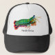 Original fine art painting of a colourful Peacock Mantis Shrimp by artist Carolyn McFann of Two Purring Cats Studio printed on a customisable hat for all who like their crustaceans with attitude! Great gift idea for scuba divers and saltwater aquarium fans.