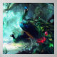 Colourful peacocks in misty forest Poster