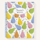 Bold and colourful pears pattern on cute personalised recipe notebook.