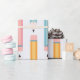 A playful and modern seamless pattern featuring bright and bold coloured pencils in shades of pink, blue, and orange arranged in a neat, repeating vertical design. The light background contrasts perfectly with the vibrant pencils, giving the pattern a fun and creative feel, ideal for inspiring creativity and adding a pop of colour.