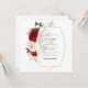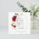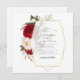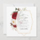 Beautiful watercolor floral bouquet in rich reds and whites, includes gorgeous peonies, lilies, lush greenery and baby's breath. The bouquet is set over a white background, with a red canvas on the back. This design is finished with simple elegant calligraphy script.