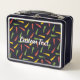 This is a standard metal lunchbox that appears to work just fine. We designed this box ourselves with an uploaded photo and custom text on the front and back. It looks absolutely beautiful except the front of the lunchbox is not centered like it shows in the photo. The print borders don't align with the inset flat part of the box where the preview photo online showed it perfectly centered in there. The back looks nice and centered though.