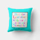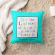 Colourful aqua throw pillow with Scripture verse from 2 Timothy 4:17 (But the Lord stood with me and gave me strength). Personalise with your name, if desired.