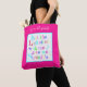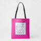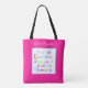 Personalise with your name scripted across the top. Tote as shown is bright pink, with colourful text letters for verse. Select CUSTOMIZE to change the background colour from pink to any other colour. Be sure to change colour on front and back of tote bag. Available in two sizes.