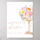 Elegant advice and wishes table sign featuring a gold champagne glass and colourful floral details.