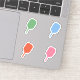 An illustration of blue, green, pink, and orange pickleball paddles.